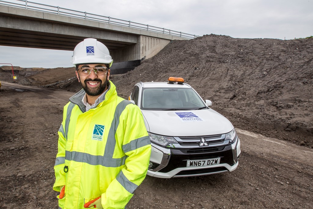 For the first time, Transport Scotland has stipulated the use of a number of electric and low-emission vehicles by its site monitoring team on a major road construction contract bringing benefits to the environment while lowering fuel costs for contractors and public sector fleets.