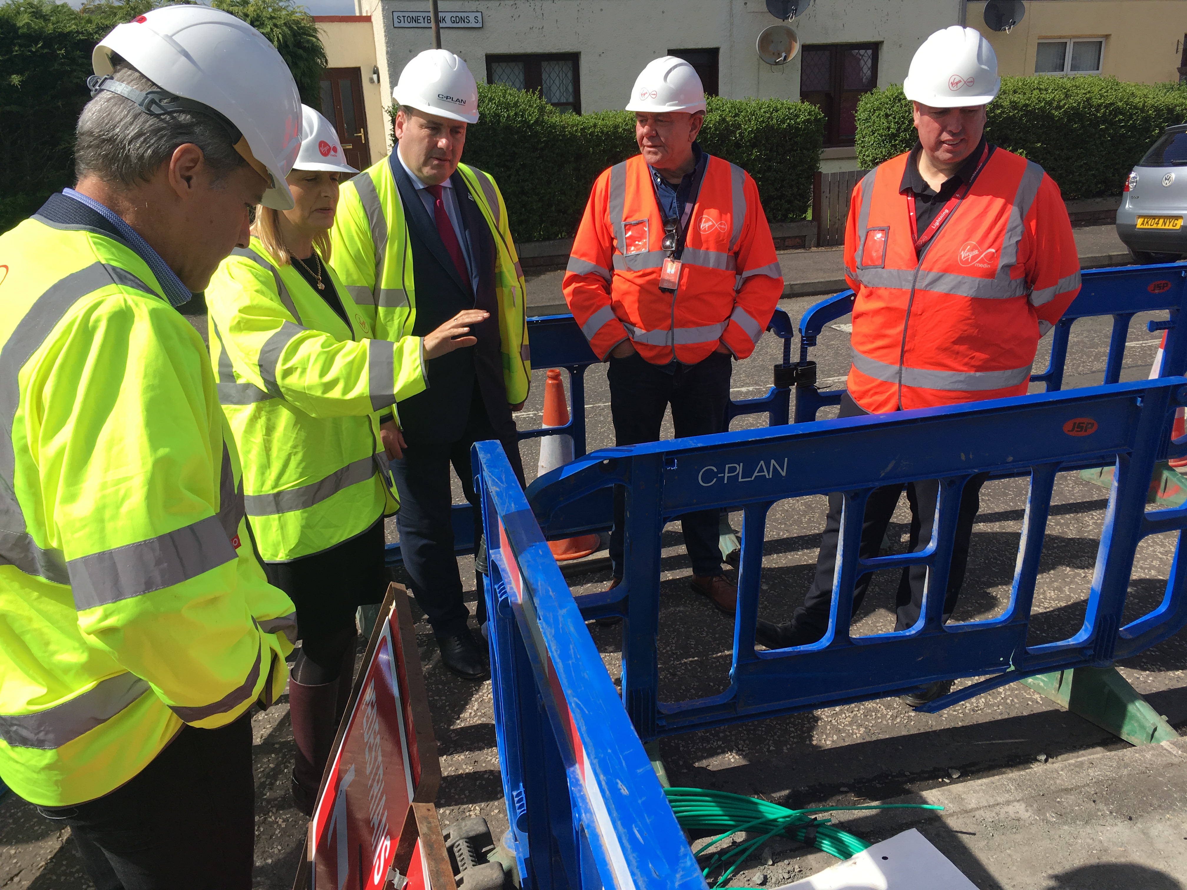 Connectivity Minister, Paul Wheelhouse, visited a Virgin Media dig to see a new broadband installation taking place and discuss the new code with the installation team.