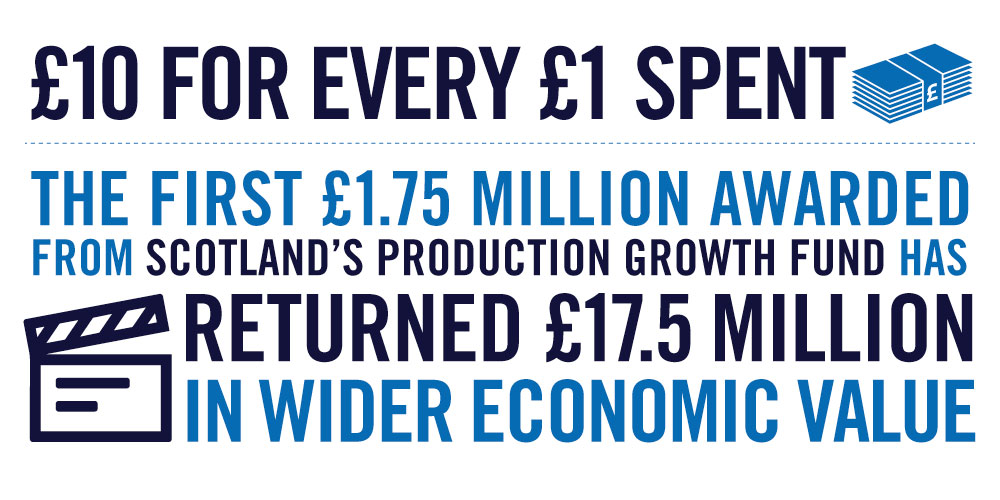 The Production Growth Fund was set up in September 2015 and initially stood at £1.75 million. Figures provided by Creative Scotland estimate the first £1.75 million allocated has resulted in a wider economic spend of £17,592,118.