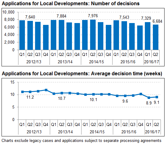 - In addition, there were 318 local developments decided in the second quarter of 2016/17 that had processing agreements in place, with 83% of these meeting agreed timescales.