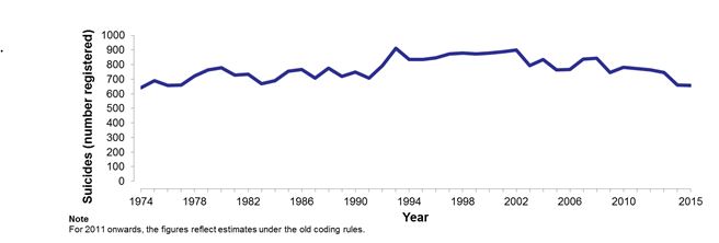 - There were 672 probable suicides in 2015, 24 (3 per cent) fewer than in the previous year;
