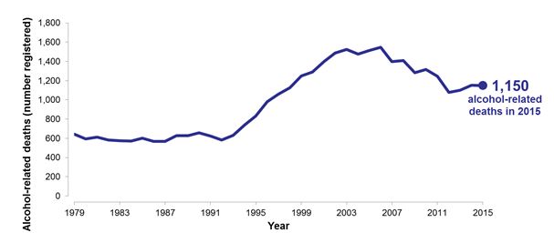 - There were 1,150 alcohol-related deaths in 2015, very similar to the 2014 figure of 1,152.