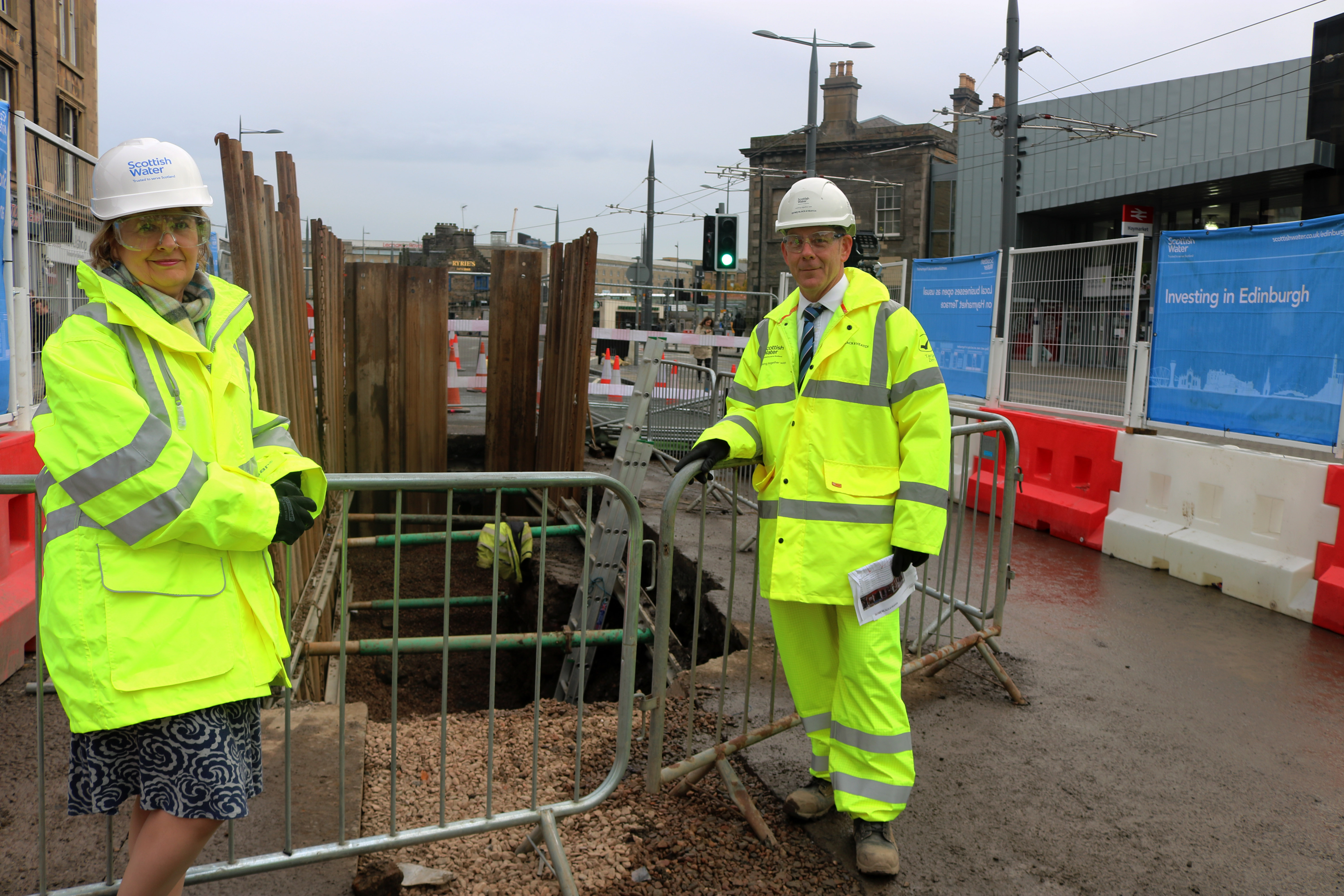 The Cabinet Secretary was visiting Scottish Water’s £2.5 million project to increase the capacity of the sewers in Edinburgh’s densely populated Haymarket area, and reduce the risk of sewer flooding.