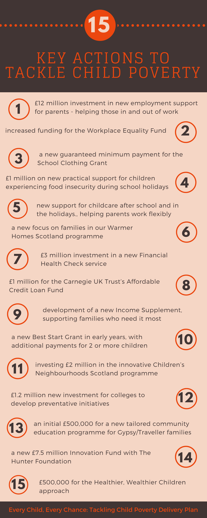 “In a country as prosperous as Scotland no child should have their chances limited by poverty. These actions are the next step in meeting our ambitious child poverty targets designed to give every child every chance, and tackle deep-seated generational poverty.
