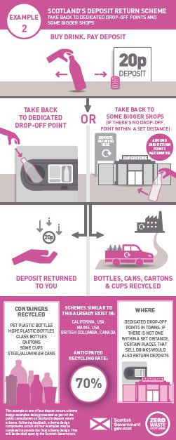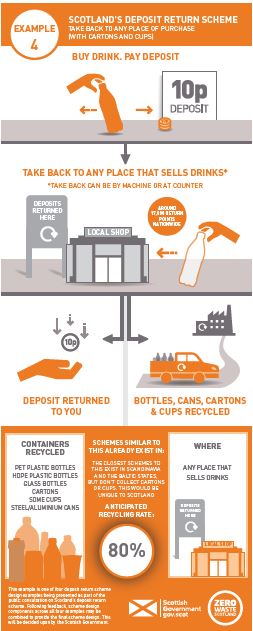 The Scottish Government and Zero Waste Scotland worked with stakeholders to design possible options for the scheme. The consultation provides four example designs to help people understand how a system would work and based on these designs between 1.5 billion and 2.5 billion containers could be recycled, with economic and societal benefits over 25 years of between £352 million and £990 million.