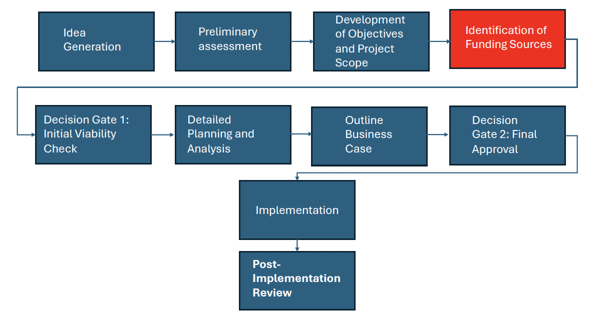 The flowchart below demonstrates the process for developing a project from initial concept to implementation.