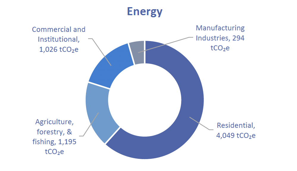 The total Greenhouse Gas Emissions from Energy (tCO2e) is 6,564. This is comprised of the following:
