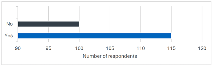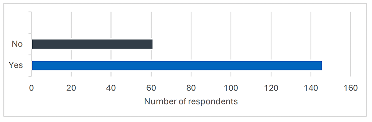Any comments and further analysis of this question are covered under the next question which had a text box for responses. This question had only ‘yes’ or ‘no’ as an option.