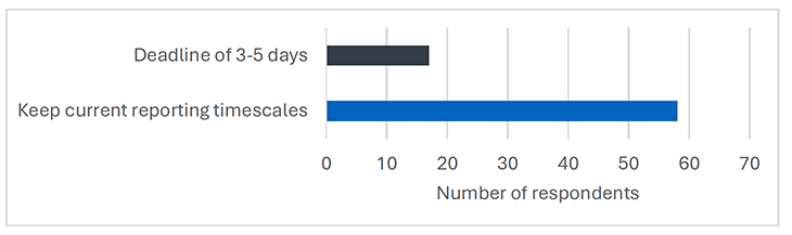 The current reporting deadlines are: 27 days to register a birth, 7 days to report a death and 3 days to report movements. The majority of respondents (58 of those who answered) were in favour of keeping current reporting timescales.