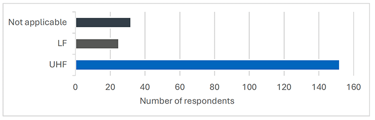 11 respondents were unsure whether to choose LF or UHF technology and therefore, selected not applicable or did not answer the question. These respondents expressed that they did not have a strong opinion on technology choice and were either not sure of the difference or happy to support what would work best for farmers in practice. Some of these respondents felt this question was too technical and that they did not know enough about the technologies to make an informed decision.