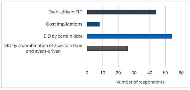 Many of the remaining respondents on both sides indicated that they were either unsure about the question or did not know enough about other forms of electronic identification and could therefore not comment further than a yes or no response. Some respondents suggested that it would have been helpful to have been provided with a list of alternative methods of electronic identification to be able to consider.