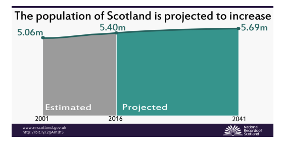 Scotland’s population is projected to increase by around five per cent over the next 20 years. We are expecting net inward migration (including from the rest of the UK) of around 30,000 people a year. Without this migration, our population would decline. Scotland’s population share of the UK population is expected to decline as the rest of the UK population is projected to grow more rapidly.
