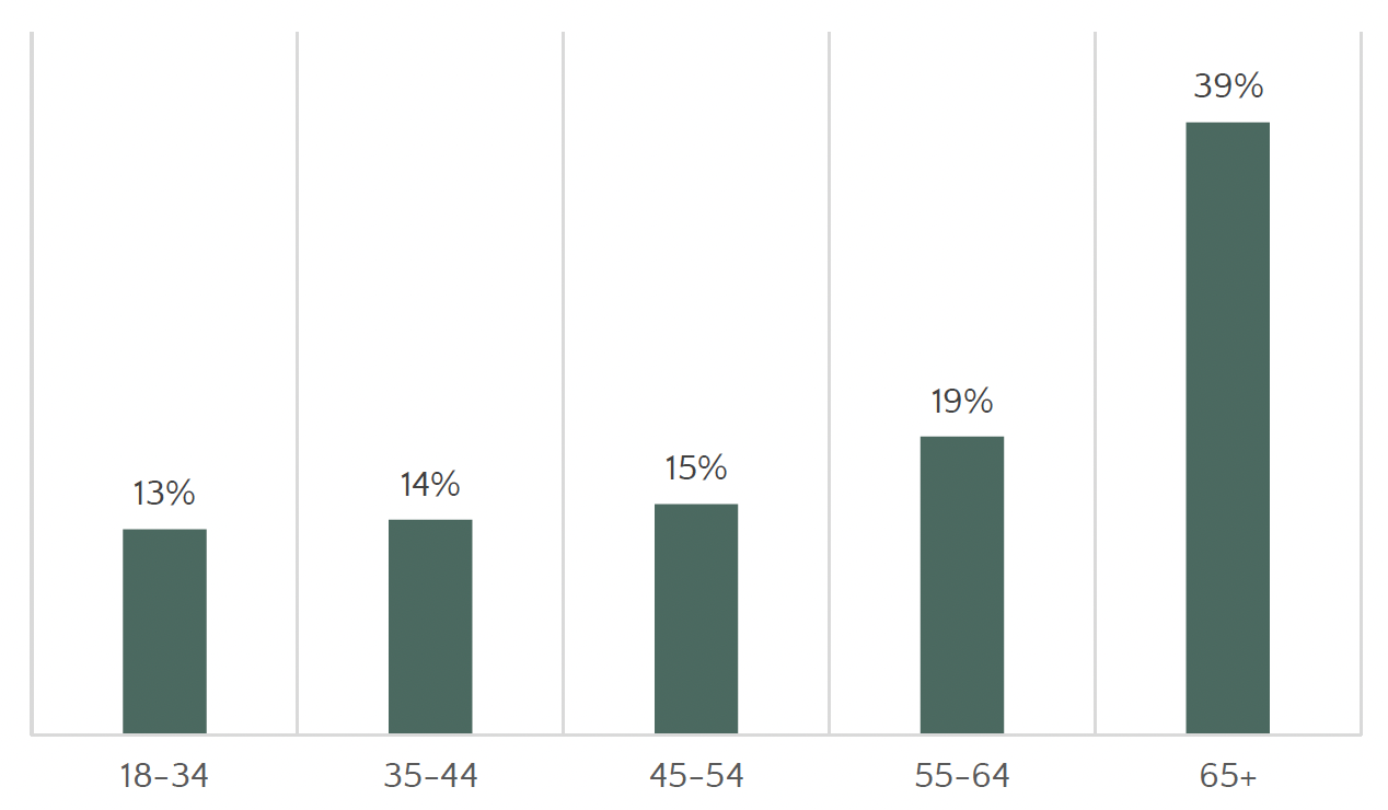 Out of the people asked to shield during the pandemic, 39% were aged 65 or older, and 19% were between the ages of 55 and 64 (see Figure 2.1).