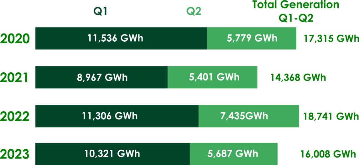 Figure 5: Wind and hydro generation (Q1-Q2, 2022 and 2023)