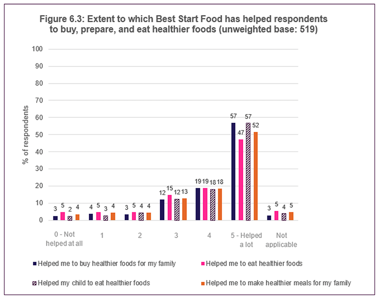- Over half (57%) of respondents reported that BSF had ‘helped a lot’ with buying healthier foods for their family.