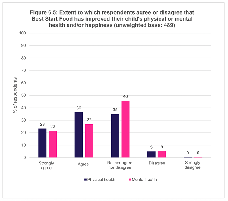 Survey respondents were also asked about the extent to which BSF payments had improved their child’s physical health and mental health and/or happiness.