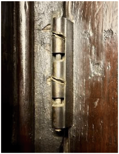 Historic doors may have historic hinges, latches and self-closing devices, that predate any British standards. These items may be as historically important as the door leaf itself, so they will need to be assessed for their existing performance in a fire and for their future endurance.
