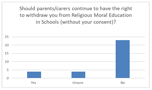 The majority of the young people asked within the sample secondary, said they wanted the choice to be able to opt back into both RME and RO if their parents wanted to withdraw them.