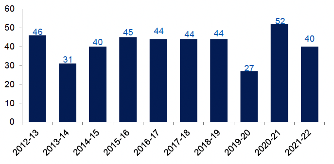 - Sharp fall in emergency hospital admissions due to assault since 2012-13. In 2021-22, there were 1,819 emergency hospital admissions due to assault, including 399 due to assault with a sharp object. These were, respectively, 47% and 38% lower than in 2012-13.