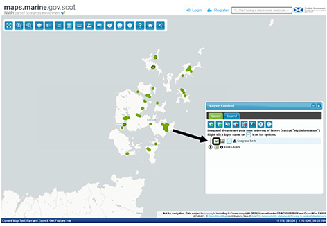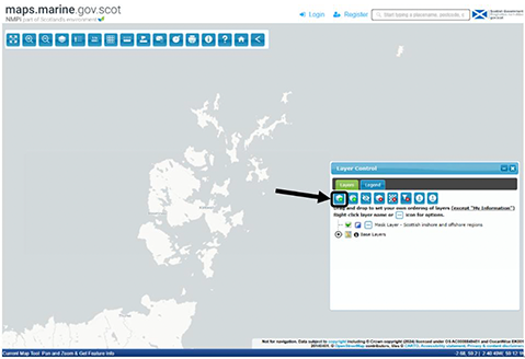 A3.4 NMPi is accessed online at http://maps.marine.gov.scot/ or via an internet search for ‘NMPi Scotland’. Data can be viewed via the ‘View layers to add/remove’ button.