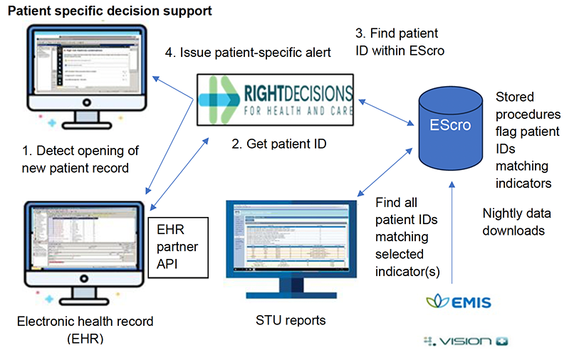 - The Right Decision Service (RDS) computerised decision support prompts, integrated with primary care systems