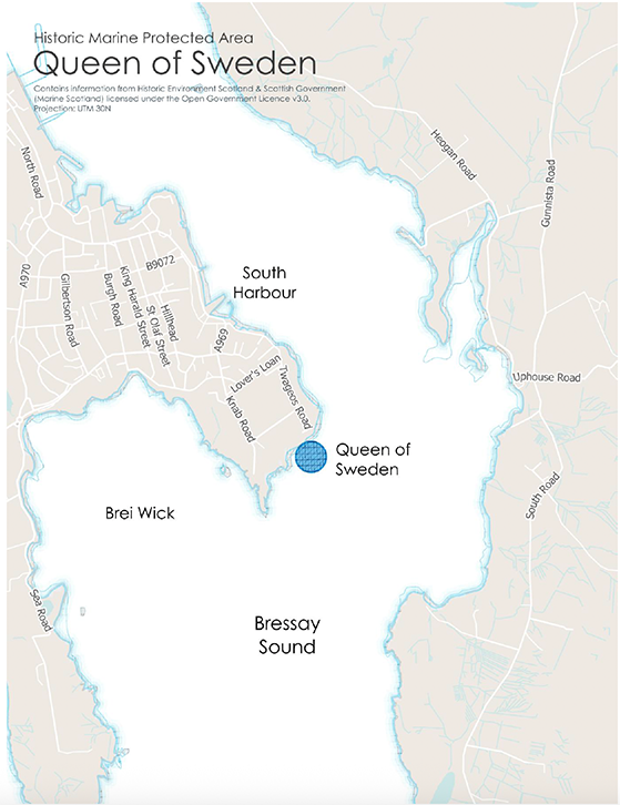 The vessel’s loss in Bressay Sound bears testament to Shetland's strategically significant location on sea-routes linking northern Europe with the rest of the world. The loss of the Queen of Sweden was a significant event to local communities on Shetland at the time. Designation as a Historic MPA would recognise the wreck’s national importance and promote responsible actions by sea-users. In particular the site has been targeted recently by divers to recover lead ingots (carried as cargo), and it may continue to be vulnerable to unrecorded recovery of artefacts, without statutory protection. Designation will ensure that divers can continue to visit the site but, on a look, but don’t touch basis.