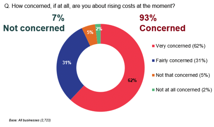 Almost all businesses (93%) were concerned about rising costs, with just 7% not concerned.