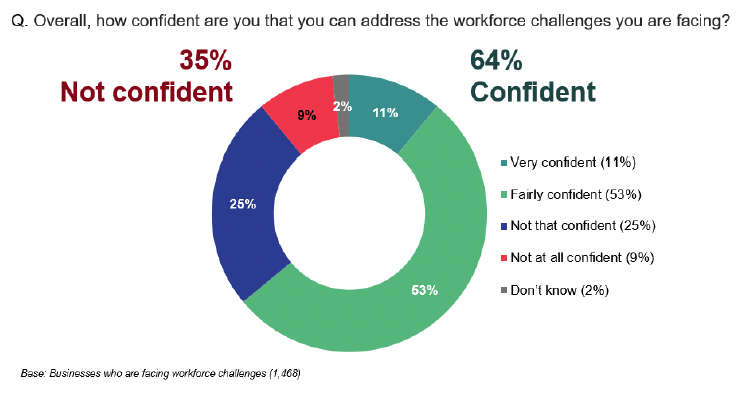Two-thirds of employers were confident they could address their workforce challenges (64%), while one third were not (35%).