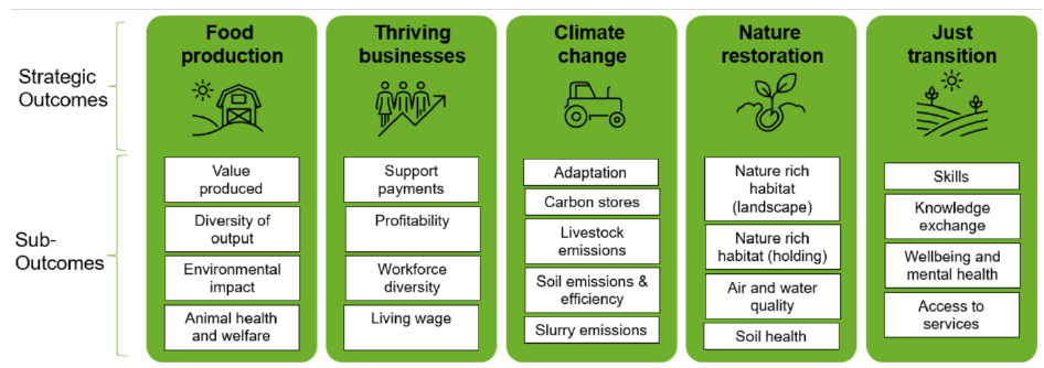 The Scottish Government is currently preparing their Agricultural Reform, changing how the government will support farming and food production in Scotland. The ‘Vision for Agriculture’, published in March 2022, [See reference 36] outlines the long-term vision for Scotland to become a global leader in sustainable and regenerative agriculture. The Agriculture and Rural Communities (Scotland) Act 2024 [See reference 37] establishes the legislative foundation for the Agricultural Reform, enabling the introduction of a four-tiered support framework underpinned by the five key objectives of the Act: