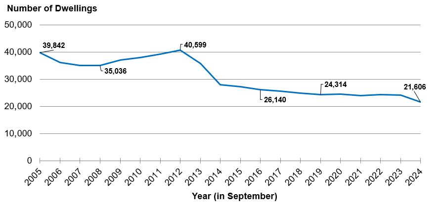 This statistical publication presents latest figures (September 2024) on empty properties, unoccupied exemptions and second homes sourced from council tax base returns collected annually from local authorities. Data relates to all stock of all tenures, including social housing, private rented housing, and owner-occupied homes.